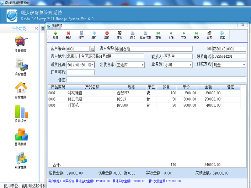 琦順達(dá)送貨單打印軟件不僅僅集成了送貨單管理、產(chǎn)品管理、客戶(hù)管理、數(shù)據(jù)分析、圖表分析等常見(jiàn)的送貨單打印管理功能,還集成了商品進(jìn)銷(xiāo)存管理、應(yīng)收賬款管理、應(yīng)付賬款管理、銀行收支管理、支票打印管理、快遞單打印等等功能,在管理好送貨單的同時(shí),您還可以管理好您的產(chǎn)品進(jìn)銷(xiāo)存情況以及客戶(hù)欠款情況。
