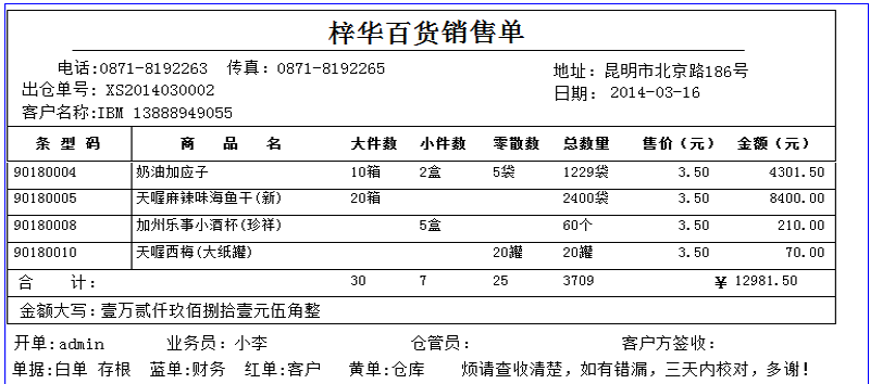 琦順達(dá)送貨單打印軟件具有數(shù)據(jù)自動(dòng)記憶功能:您開(kāi)過(guò)的送貨單不在需要重復(fù)錄入,您開(kāi)過(guò)單的的客戶(hù)信息自動(dòng)保留到客戶(hù)資料庫(kù)中,您給任何一個(gè)客戶(hù)的產(chǎn)品售價(jià)自動(dòng)記錄并在當(dāng)次開(kāi)單時(shí)自動(dòng)提示、同一張送貨單,可打印為簡(jiǎn)體,也可以打印為繁體等等,能夠做到了您所想不到的細(xì)致功能。送貨單號(hào)由系統(tǒng)自動(dòng)生成(可按年+月+日+流水號(hào)等多種格式生成送貨單號(hào)),充分利用強(qiáng)大的數(shù)據(jù)庫(kù)功能給工作帶來(lái)的便利,真正的方便實(shí)用。系統(tǒng)內(nèi)置強(qiáng)大的權(quán)限管理功能,真真正正的讓您從此告別手工抄寫(xiě)送貨單和使用EXCEL做月結(jié)的煩惱,打印出整齊漂亮的送貨單,同時(shí)還能即時(shí)管理商品庫(kù)存存貨和客戶(hù)欠款。